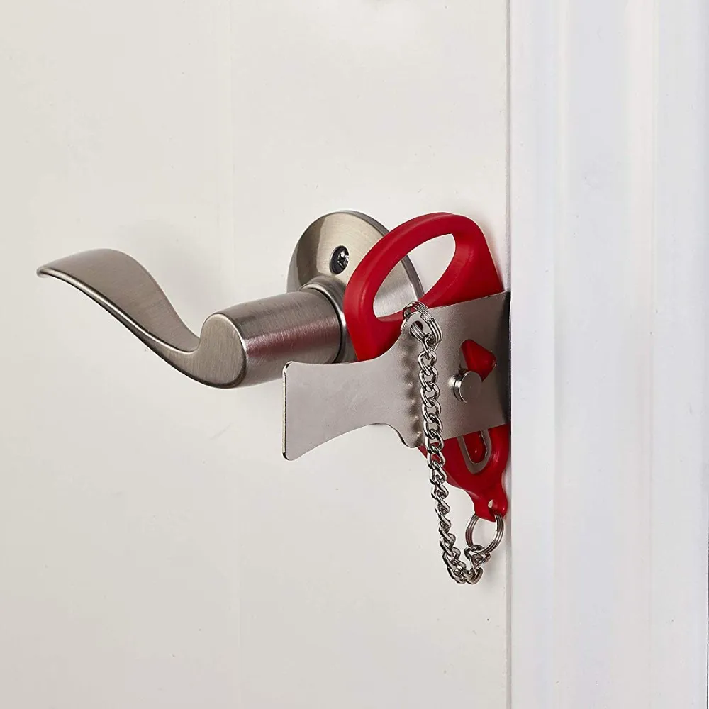 The is a portable door lock that can be easily installed and removed in seconds on any door that open inwards, giving you additional safety, security and privacy behind it.